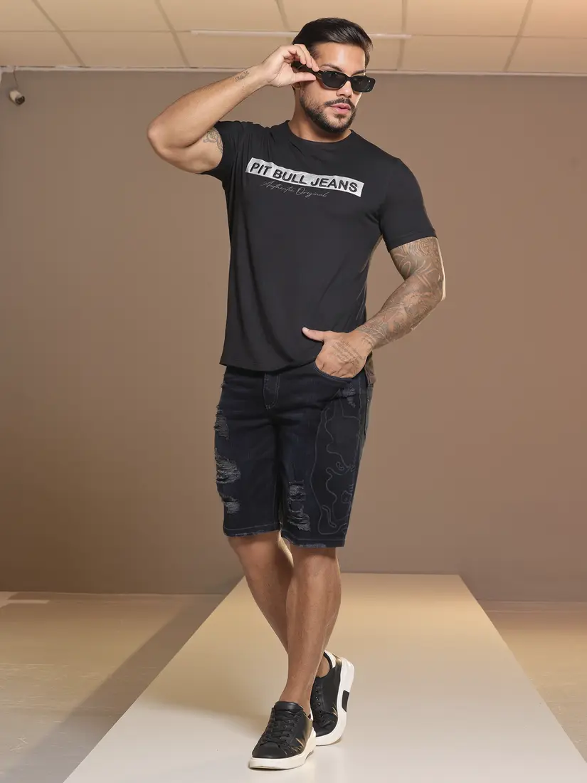 - Bermuda Masculina Estilosa com Toque Destroyed e Bordado a Laser Pit Bull Jeans