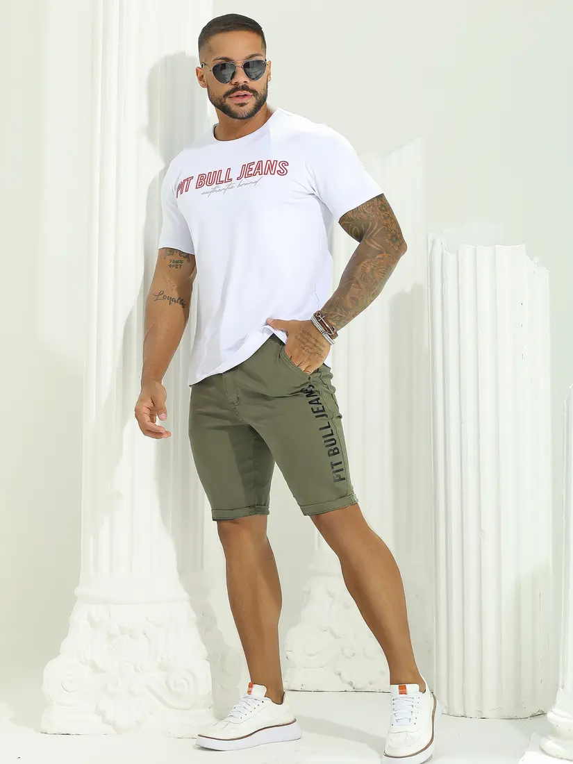 Bermuda Masculina Estilosa e Casual com Logomania Lateral Pit Bull Jeans