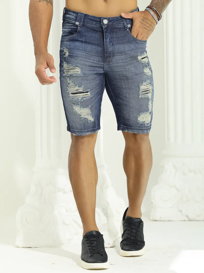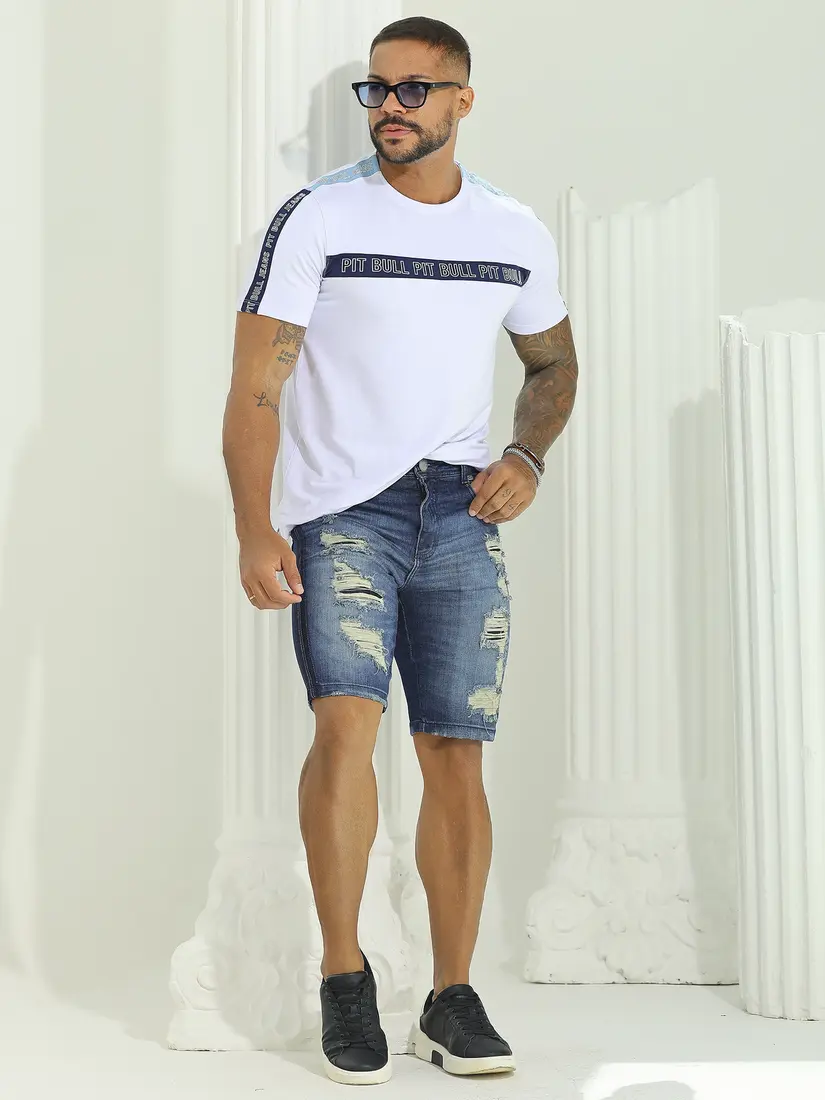 Bermuda Masculina Sofisticada com Lavado Médio e Estilo Destroyed Pit Bull Jeans