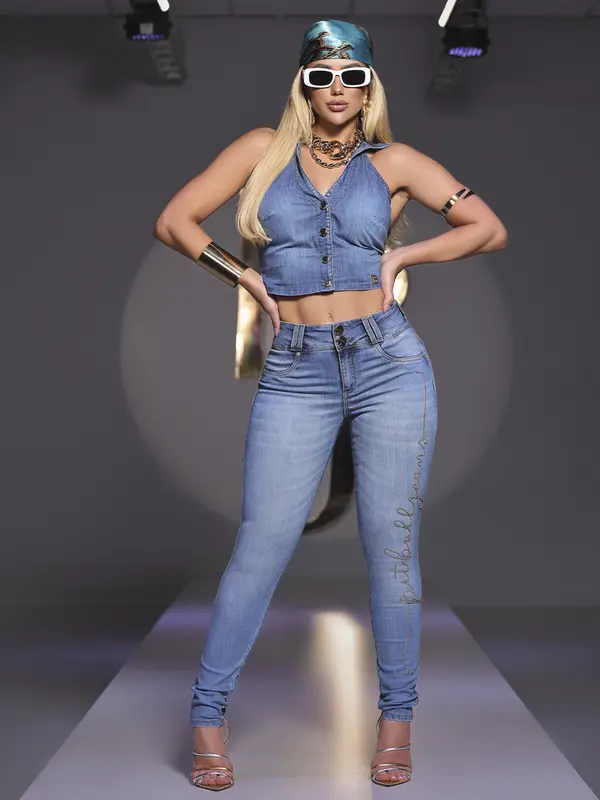 A Calça Skinny Jenny foi desenvolvida para quem busca um visual moderno, com toque artesanal e valorização da silhueta. Sua modelagem skinny proporciona um caimento ajustado, realçando as curvas com elegância. O grande destaque está na lavanderia diferenciada com lixado especial, destroyed e aplicação de laser com arte exclusiva, que confere identidade visual e atitude à peça. O cós com elástico traseiro garante ajuste confortável, enquanto o botão flexível e os rebites auto perfurantes reforçam o acabamento técnico.