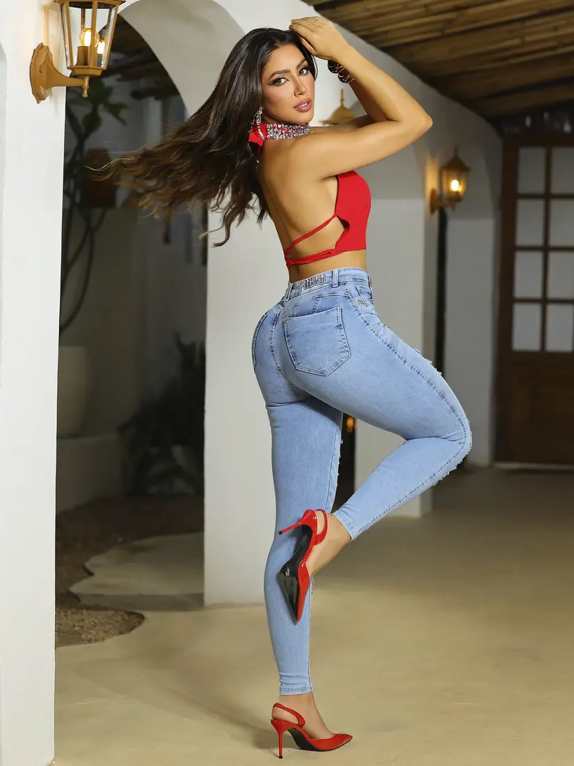 – Modelagem skinny com cintura média: efeito ajustado com valorização das curvas