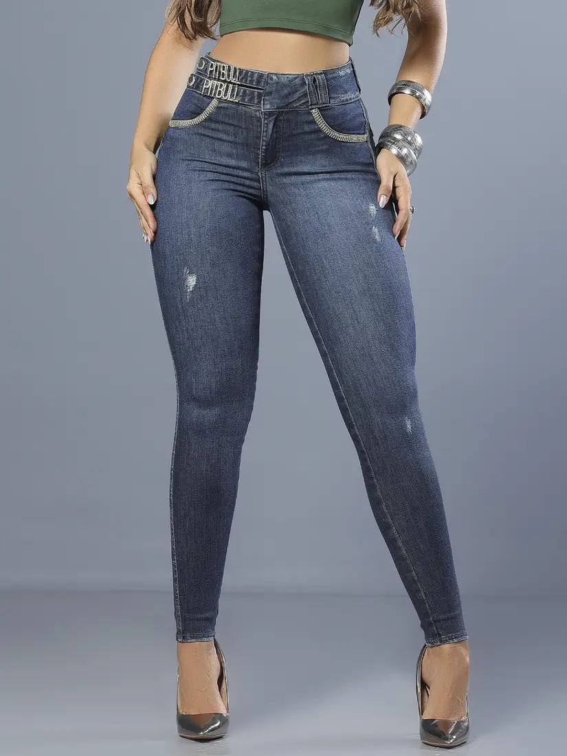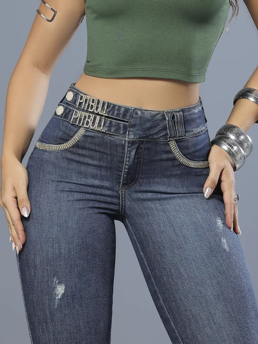 Calça Skinny Modeladora e Sofisticada com Detalhes em Strass Pit Bull Jeans