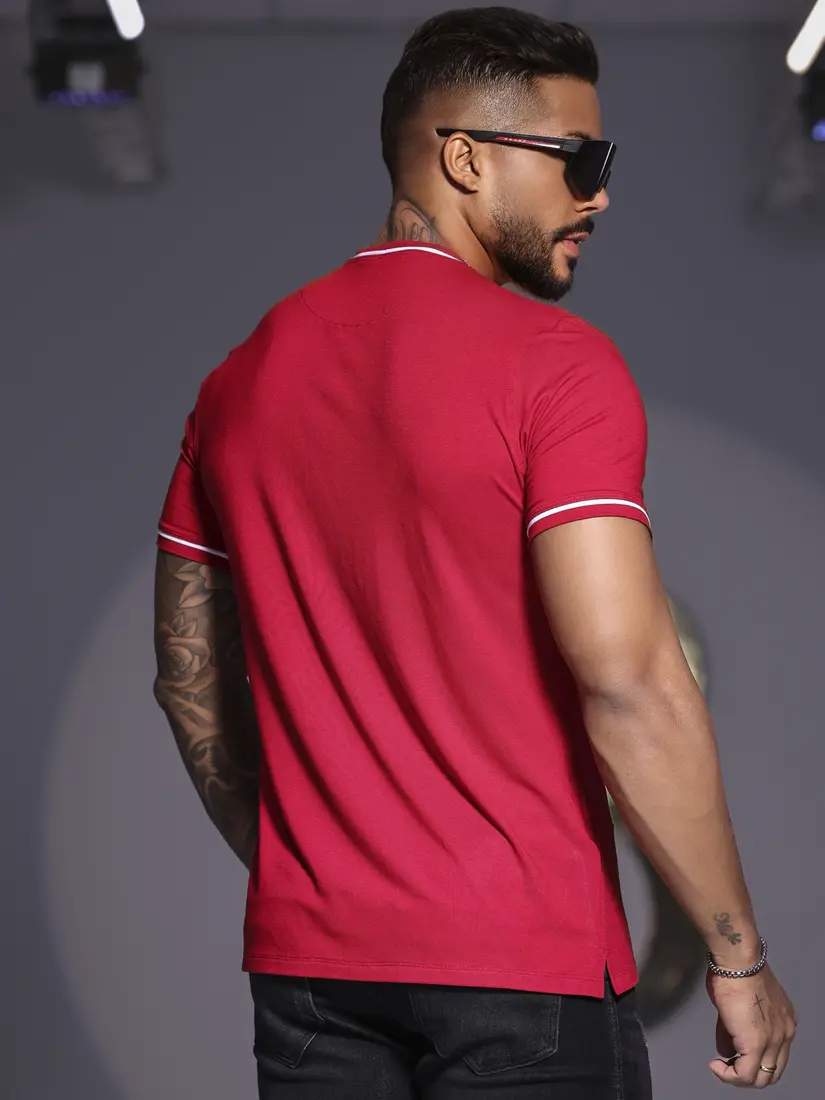 - CAMISETA MASCULINA CASUAL PIT BULL VERMELHA AUTÊNTICA E VIBRANTE