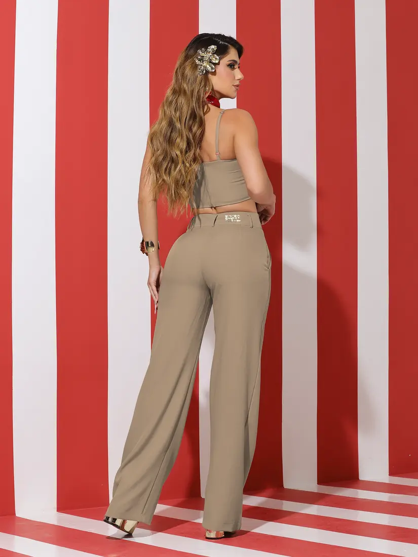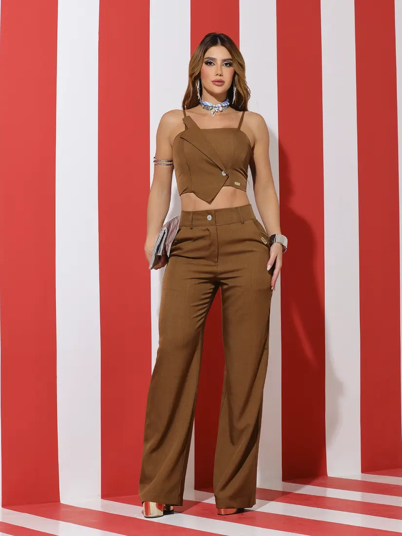 Conjunto Calça Wide Leg e Cropped Elegante e Sofisticado Empório Pit Bull