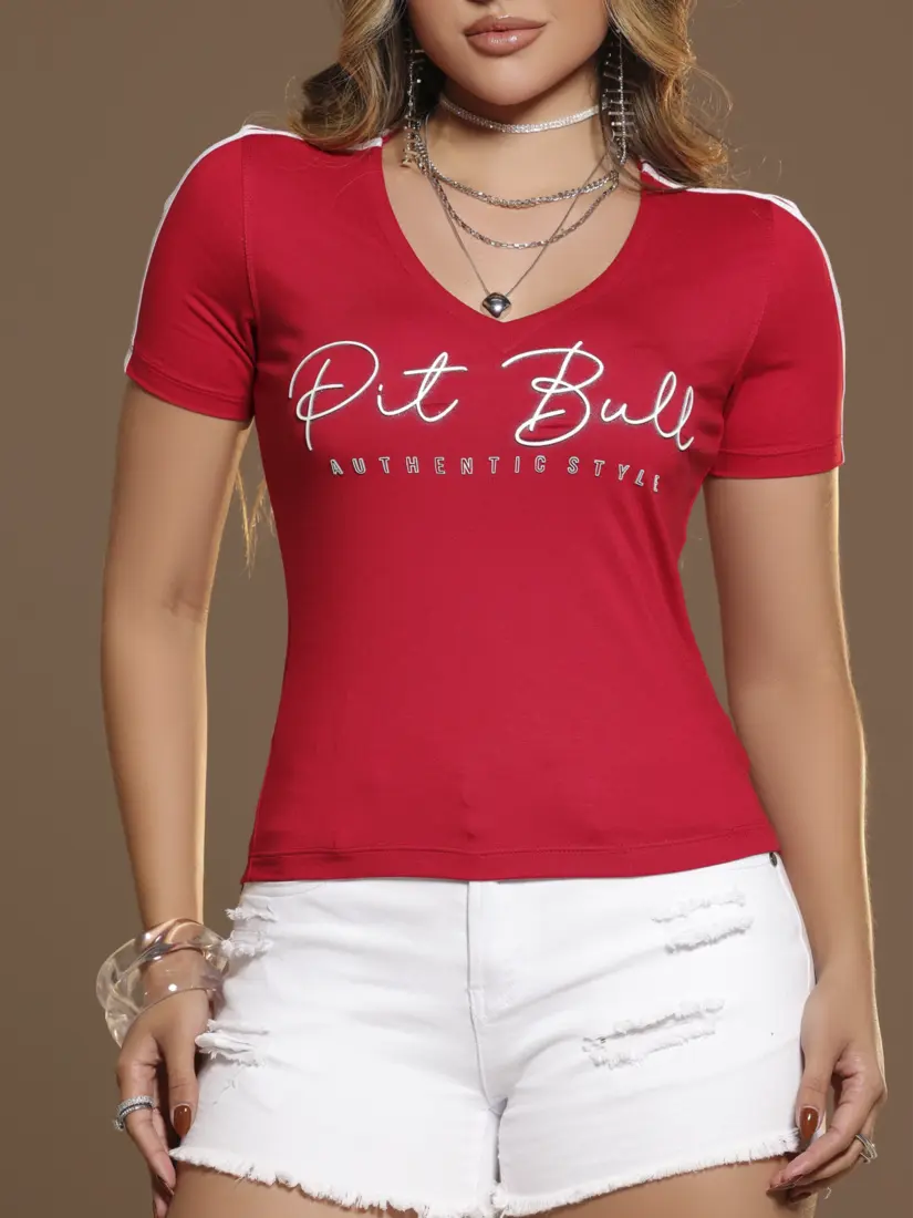 T-shirt Autêntica e Estilosa com Estampa em Relevo Pit Bull Jeans
